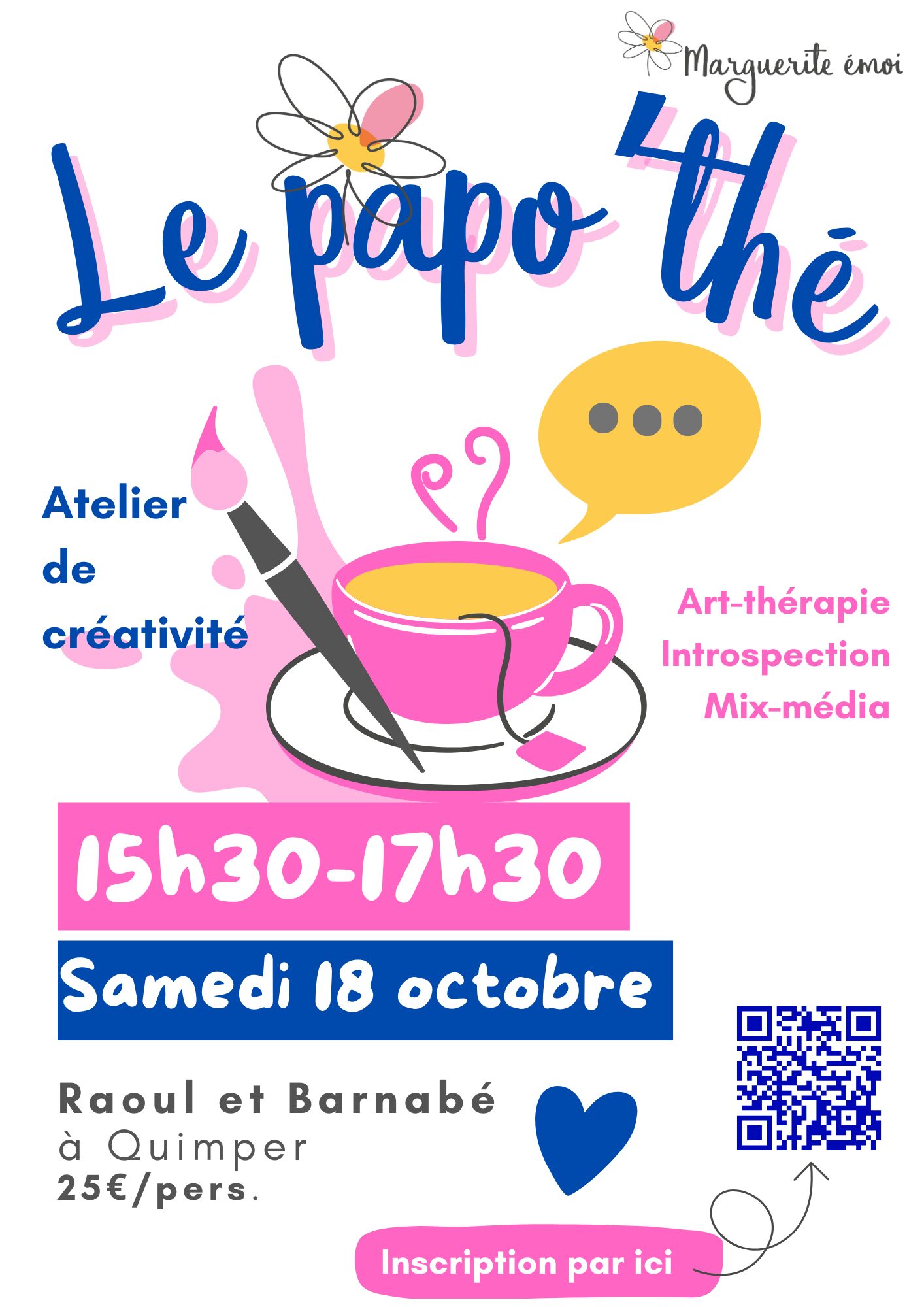 Atelier d'introspection créative. 25€/pers. Boisson comprise.